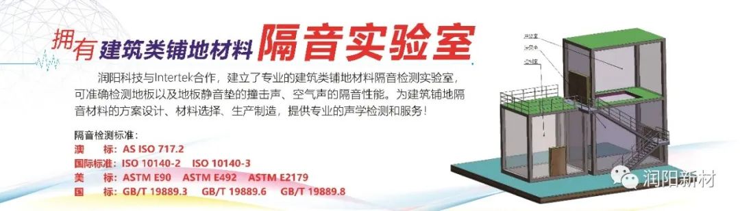 據(jù)了解,為了進一步增強自身科研實力,更好服務(wù)下游客戶,潤陽科技與Intertek建筑工程事業(yè)部合作,建立專業(yè)的建筑類鋪地材料隔音檢測實驗室,可準確檢測地板及地板靜音墊的撞擊聲、空氣聲的隔音性能。為建筑鋪地隔音材料的方案設(shè)計、材料選擇、生產(chǎn)制造,提供專業(yè)的聲學(xué)檢測和服務(wù)。